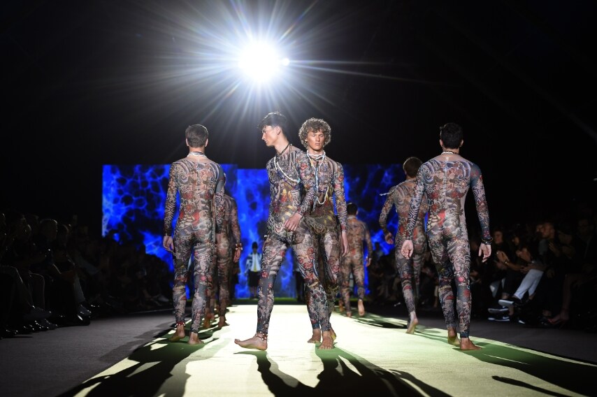Nell'ultimo giorno di Milano Moda Uomo sfila la collezione primavera/Estate 2016 di Dsquared2. I gemelli Dean e Dan Caten portano in passerella un esercito di surfer tatuati che indossando canotte scollate, short dai colori accesi, cappelli voluminosi e completano il look con scarponcini da montagna e maxi zaini.