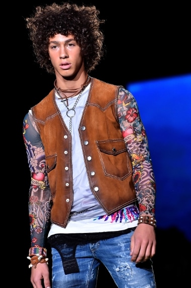 Nell'ultimo giorno di Milano Moda Uomo sfila la collezione primavera/Estate 2016 di Dsquared2. I gemelli Dean e Dan Caten portano in passerella un esercito di surfer tatuati che indossando canotte scollate, short dai colori accesi, cappelli voluminosi e completano il look con scarponcini da montagna e maxi zaini.