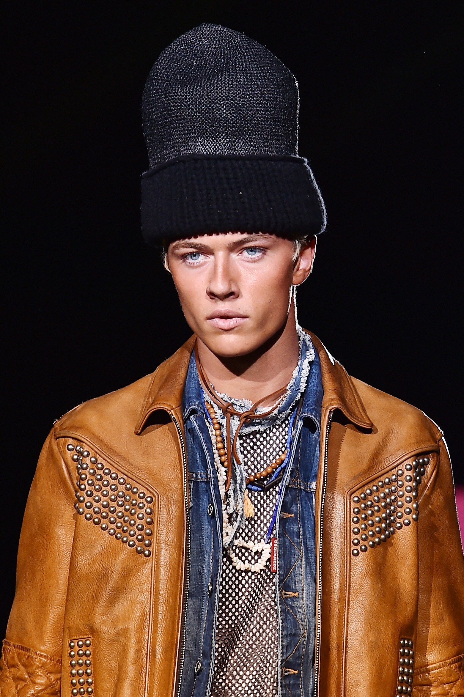 Nell'ultimo giorno di Milano Moda Uomo sfila la collezione primavera/Estate 2016 di Dsquared2. I gemelli Dean e Dan Caten portano in passerella un esercito di surfer tatuati che indossando canotte scollate, short dai colori accesi, cappelli voluminosi e completano il look con scarponcini da montagna e maxi zaini.