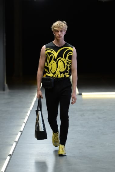 Ispirazioni derivanti dallo scenario punk, rock e rap della New York anni '80 rivivono nella collezione uomo per la Primavera/Estate 2016 di Hogan. In passerella sfilano shirt con "scarabocchi" fluo, giacche tuxedo e capi militari abbinati a sneakers, scarpe stampate, mocassini con nappine e maxi borse in pelle gommata.