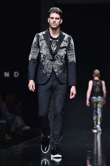 Grafisimi, stampe e nuances accese sfilano indosso all'uomo John Richmond per la Primavera/Estate 2016. Il designer alla Milano Fashion Week propone una collezione fatta di contrasti tra linee pulite e grafiche d'impatto, tra capi total black e pezzi super colorati.