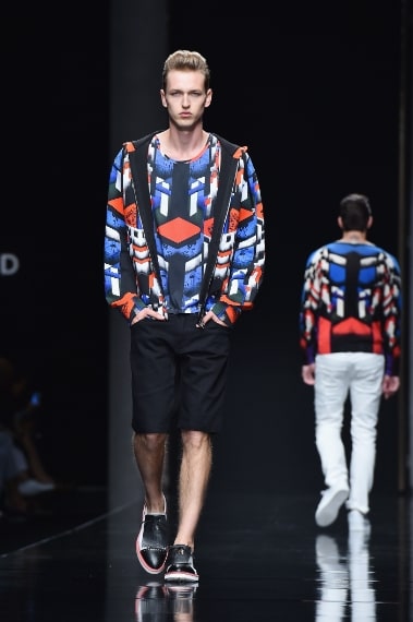Grafisimi, stampe e nuances accese sfilano indosso all'uomo John Richmond per la Primavera/Estate 2016. Il designer alla Milano Fashion Week propone una collezione fatta di contrasti tra linee pulite e grafiche d'impatto, tra capi total black e pezzi super colorati.