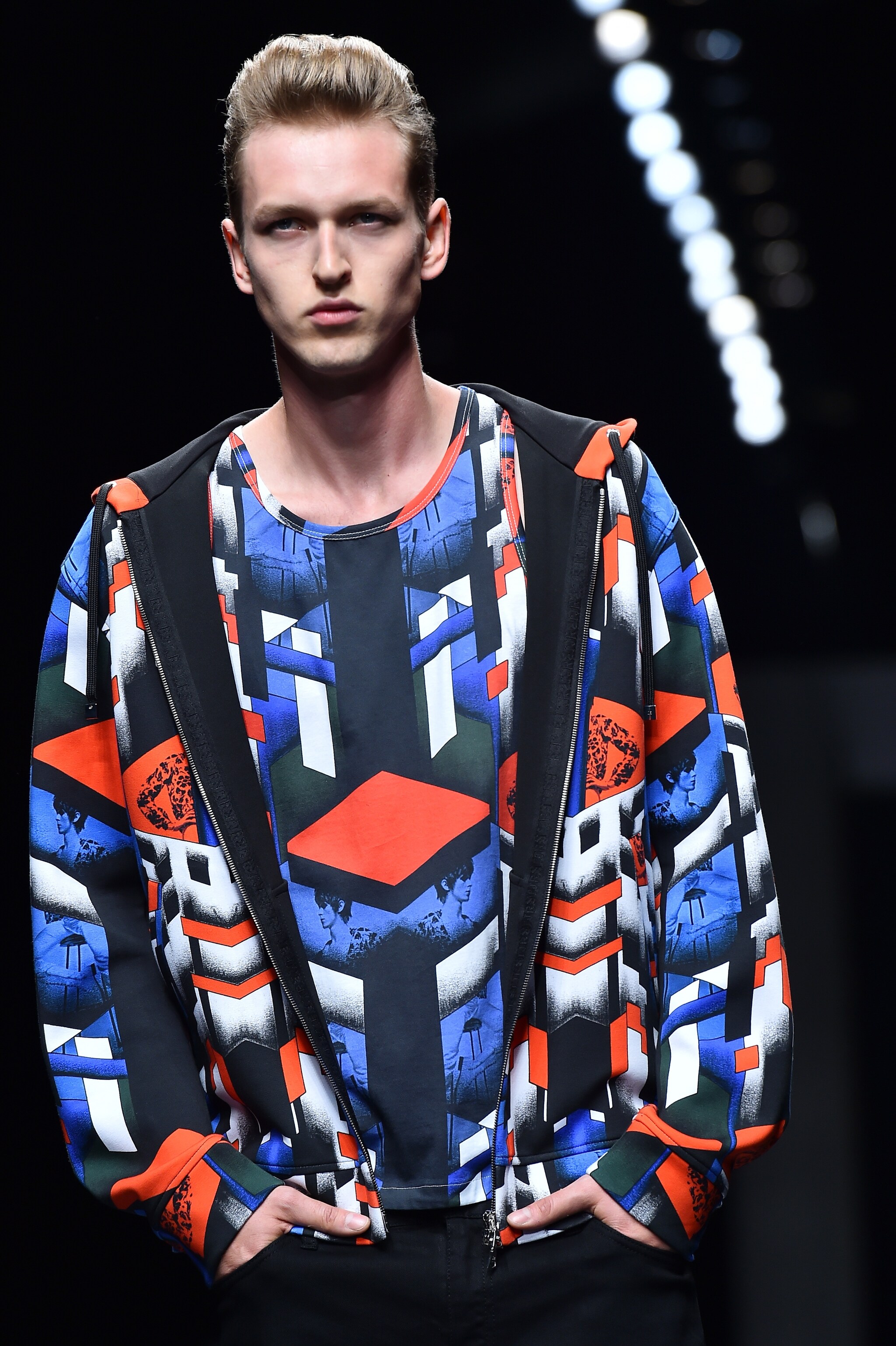Grafisimi, stampe e nuances accese sfilano indosso all'uomo John Richmond per la Primavera/Estate 2016. Il designer alla Milano Fashion Week propone una collezione fatta di contrasti tra linee pulite e grafiche d'impatto, tra capi total black e pezzi super colorati.