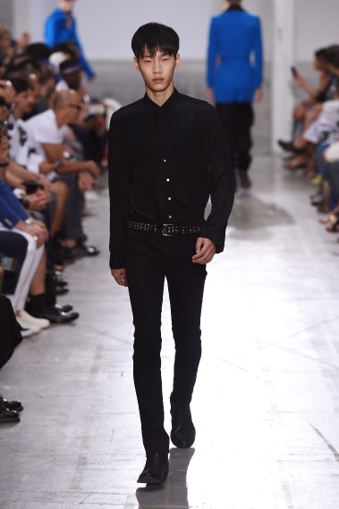 Linee pulite ed essenziali, look in total black intervallati da sprazzi di rosso intenso e blu acceso sfilano sulla passerella di CoSTUME NATIONAL alla Settimana della Moda di Milano. Ennio Capasa per la Primavera/Estate 2016 disegna un uomo "minimal-rock" che indossa pantaloni skinny e occhiali scuri, morbide camicie in seta e collari per completare il look.