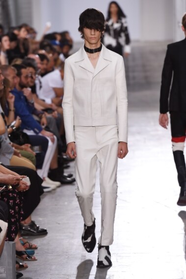 Linee pulite ed essenziali, look in total black intervallati da sprazzi di rosso intenso e blu acceso sfilano sulla passerella di CoSTUME NATIONAL alla Settimana della Moda di Milano. Ennio Capasa per la Primavera/Estate 2016 disegna un uomo "minimal-rock" che indossa pantaloni skinny e occhiali scuri, morbide camicie in seta e collari per completare il look.
