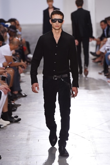 Linee pulite ed essenziali, look in total black intervallati da sprazzi di rosso intenso e blu acceso sfilano sulla passerella di CoSTUME NATIONAL alla Settimana della Moda di Milano. Ennio Capasa per la Primavera/Estate 2016 disegna un uomo "minimal-rock" che indossa pantaloni skinny e occhiali scuri, morbide camicie in seta e collari per completare il look.