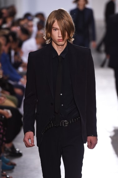 Linee pulite ed essenziali, look in total black intervallati da sprazzi di rosso intenso e blu acceso sfilano sulla passerella di CoSTUME NATIONAL alla Settimana della Moda di Milano. Ennio Capasa per la Primavera/Estate 2016 disegna un uomo "minimal-rock" che indossa pantaloni skinny e occhiali scuri, morbide camicie in seta e collari per completare il look.