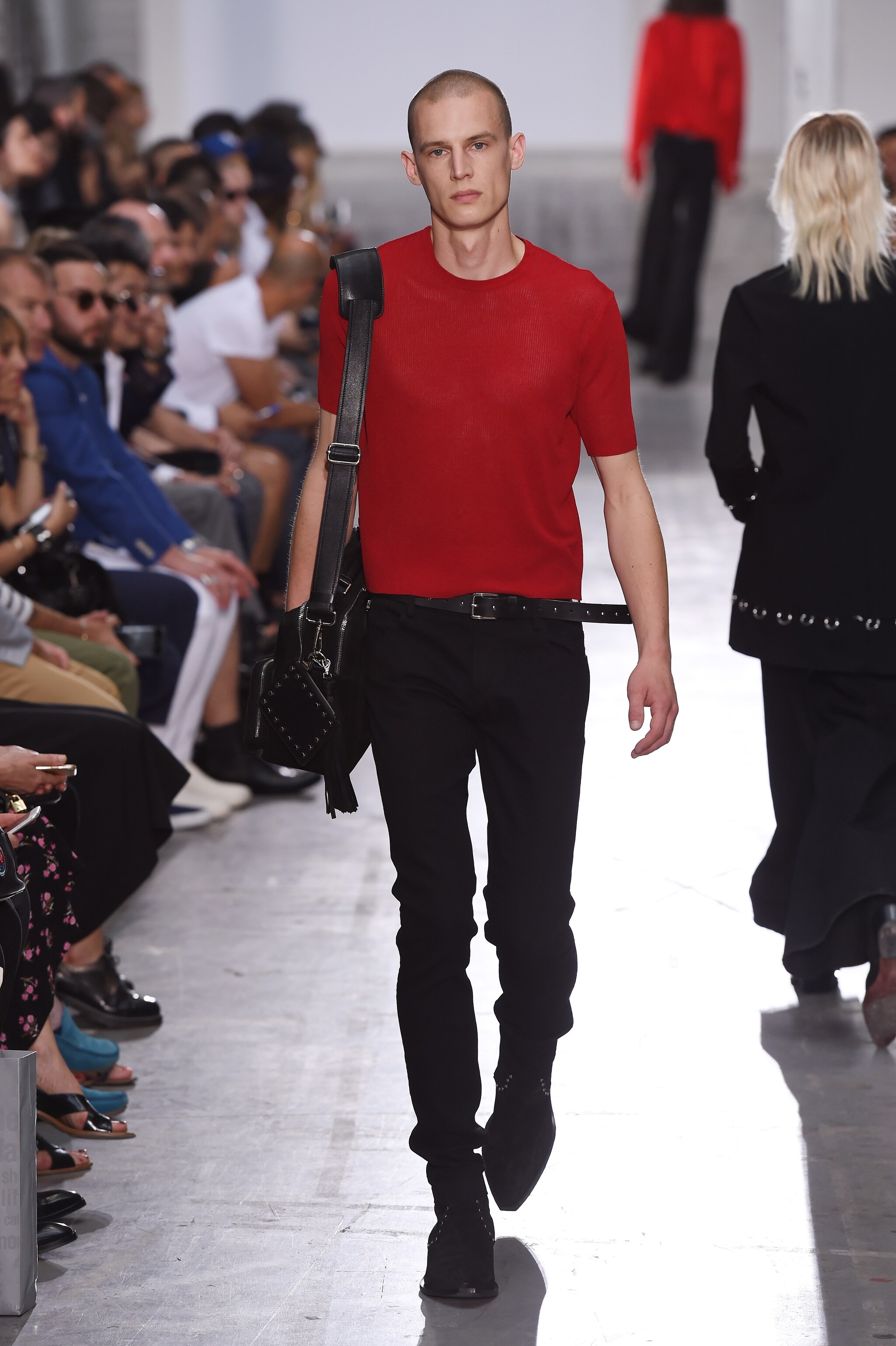 Linee pulite ed essenziali, look in total black intervallati da sprazzi di rosso intenso e blu acceso sfilano sulla passerella di CoSTUME NATIONAL alla Settimana della Moda di Milano. Ennio Capasa per la Primavera/Estate 2016 disegna un uomo "minimal-rock" che indossa pantaloni skinny e occhiali scuri, morbide camicie in seta e collari per completare il look.