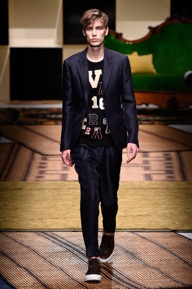 L'eleganza dell'alta sartoria si mescola con elementi pop nella collezione Primavera/Estate 2016 presentata dalla Maison Salvatore Ferragamo durante Milano Moda Uomo. Massimiliano Giornetti, designer di Ferragamo, disegna lo stile di un uomo giovane e trendy che non rinuncia all'eleganza di capi evergreen ma ama indossare shirt e felpe decorate con lettering e grafismi iper colorati, cravatte slim, sandali e cappellini con visiera.