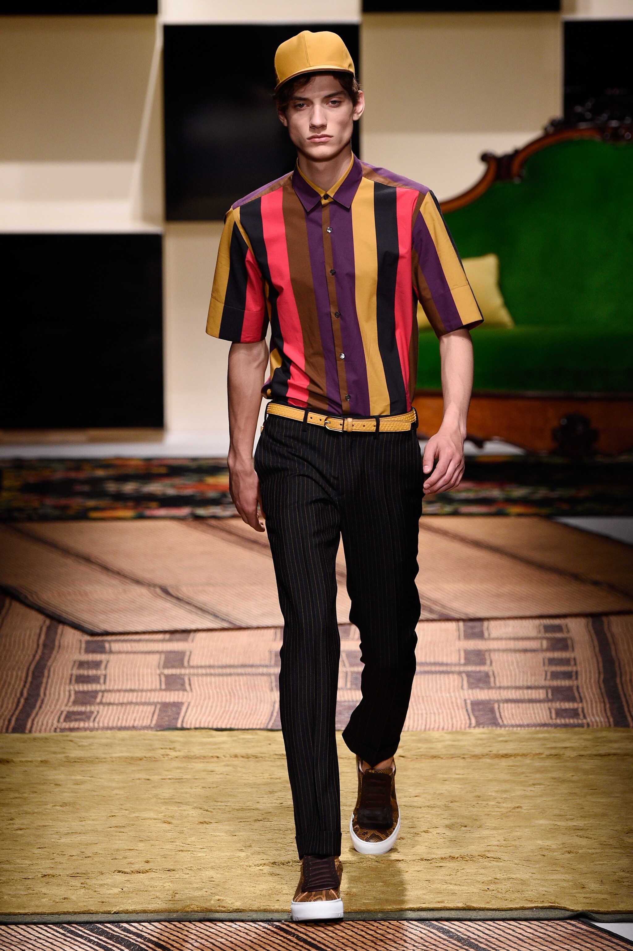 L'eleganza dell'alta sartoria si mescola con elementi pop nella collezione Primavera/Estate 2016 presentata dalla Maison Salvatore Ferragamo durante Milano Moda Uomo. Massimiliano Giornetti, designer di Ferragamo, disegna lo stile di un uomo giovane e trendy che non rinuncia all'eleganza di capi evergreen ma ama indossare shirt e felpe decorate con lettering e grafismi iper colorati, cravatte slim, sandali e cappellini con visiera.