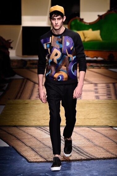 L'eleganza dell'alta sartoria si mescola con elementi pop nella collezione Primavera/Estate 2016 presentata dalla Maison Salvatore Ferragamo durante Milano Moda Uomo. Massimiliano Giornetti, designer di Ferragamo, disegna lo stile di un uomo giovane e trendy che non rinuncia all'eleganza di capi evergreen ma ama indossare shirt e felpe decorate con lettering e grafismi iper colorati, cravatte slim, sandali e cappellini con visiera.