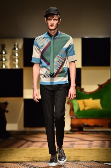 L'eleganza dell'alta sartoria si mescola con elementi pop nella collezione Primavera/Estate 2016 presentata dalla Maison Salvatore Ferragamo durante Milano Moda Uomo. Massimiliano Giornetti, designer di Ferragamo, disegna lo stile di un uomo giovane e trendy che non rinuncia all'eleganza di capi evergreen ma ama indossare shirt e felpe decorate con lettering e grafismi iper colorati, cravatte slim, sandali e cappellini con visiera.
