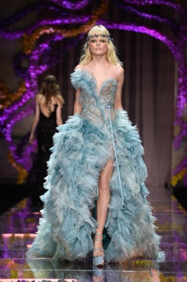 Alla settimana dell'Alta Moda di Parigi sfila la collezione Autunno/Inverno 2015-16 di Atelier Versace, linea Haute Couture della Maison della Medusa. Donatella Versace porta in passerella una "regina dei boschi" dall'animo hippie, vestita con leggiadri abiti dalle nuance romantiche, come il lilla e il rosa antico. La designer rende sensuale la donna con spacchi profondi e trasparenze, con corpetti rivelatori e profonde scollature, completando ogni look con grosse zeppe in vernice dal mood "seventies" e coroncine di fiori in stile hippie.