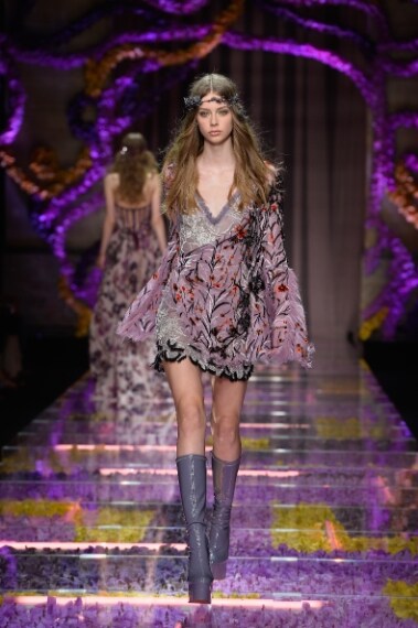 Alla settimana dell'Alta Moda di Parigi sfila la collezione Autunno/Inverno 2015-16 di Atelier Versace, linea Haute Couture della Maison della Medusa. Donatella Versace porta in passerella una "regina dei boschi" dall'animo hippie, vestita con leggiadri abiti dalle nuance romantiche, come il lilla e il rosa antico. La designer rende sensuale la donna con spacchi profondi e trasparenze, con corpetti rivelatori e profonde scollature, completando ogni look con grosse zeppe in vernice dal mood "seventies" e coroncine di fiori in stile hippie.