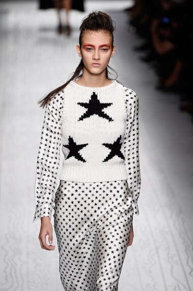 Una collezione di contrasti quella di Max Mara, che vede trionfare il bianco e il nero con fantasie semplici come le righe, le stelle e le linee astratte. Le linee sono pulite e rigorose, sinuose anche se prive di volumi. La donna di Max Mara è una donna elegante e casual allo stesso tempo: i soprabiti sono maxi, torna la vita alta e i pantaloni riacquistano l'ampiezza tipica degli anni'60. Il vintage si mixa perfettamente al punk per dare un tocco di modernità alla collezione primaverile.
