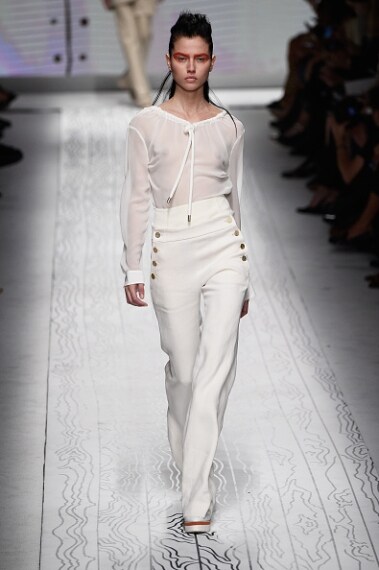 Una collezione di contrasti quella di Max Mara, che vede trionfare il bianco e il nero con fantasie semplici come le righe, le stelle e le linee astratte. Le linee sono pulite e rigorose, sinuose anche se prive di volumi. La donna di Max Mara è una donna elegante e casual allo stesso tempo: i soprabiti sono maxi, torna la vita alta e i pantaloni riacquistano l'ampiezza tipica degli anni'60. Il vintage si mixa perfettamente al punk per dare un tocco di modernità alla collezione primaverile.
