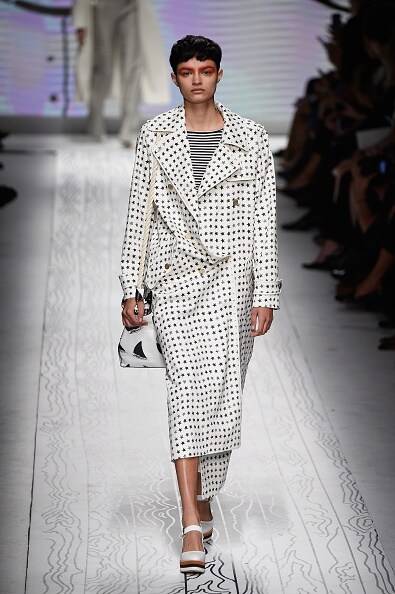 Una collezione di contrasti quella di Max Mara, che vede trionfare il bianco e il nero con fantasie semplici come le righe, le stelle e le linee astratte. Le linee sono pulite e rigorose, sinuose anche se prive di volumi. La donna di Max Mara è una donna elegante e casual allo stesso tempo: i soprabiti sono maxi, torna la vita alta e i pantaloni riacquistano l'ampiezza tipica degli anni'60. Il vintage si mixa perfettamente al punk per dare un tocco di modernità alla collezione primaverile.