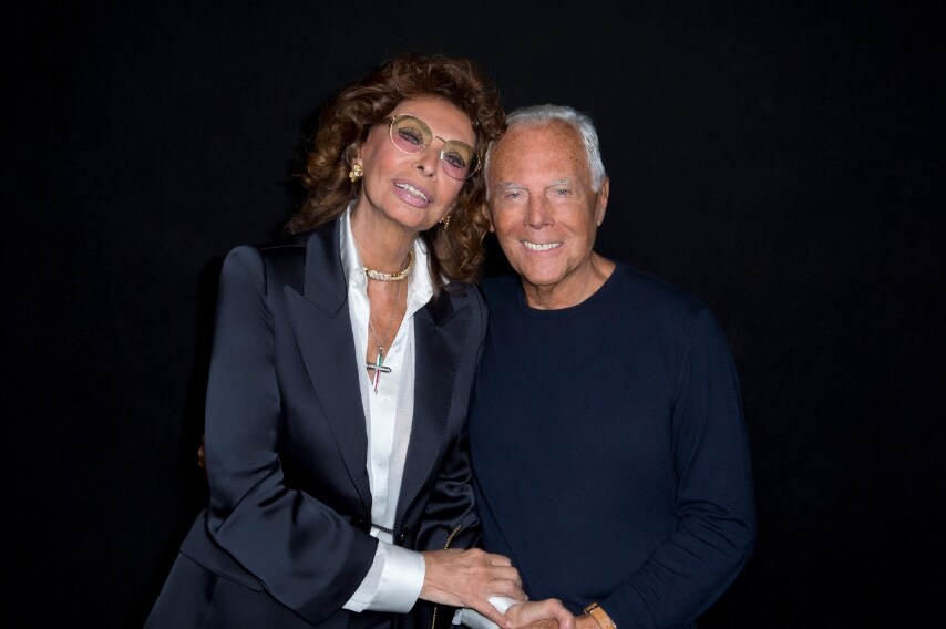 • Beatrice Borromeo con Giorgio Armani alla sfilata di Emporio Armani