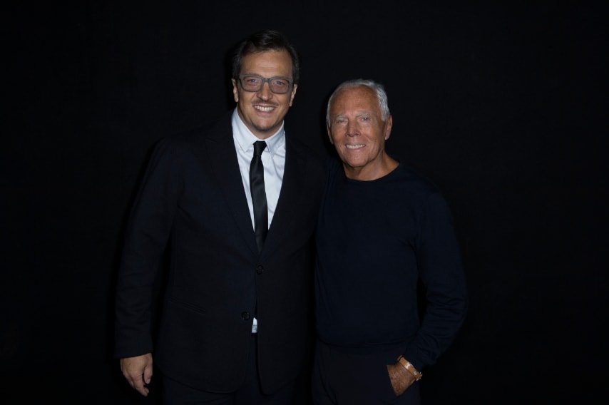• Raoul Bova con Giorgio Armani alla sfilata di Emporio Armani