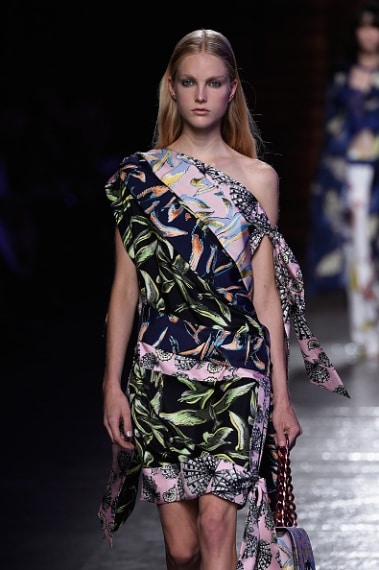 Uno stile moderno quello proposto dalla collezione primavera estate di Emilio Pucci: tagli netti, forme asimmetriche, decorazioni preziose che si alternano e borchie, colori delicati come il rosa, l'azzurro, il giallo e il corallo si affiancano a tessuti come la tela, il jersey il raso e il pizzo. Una collezione giovane e fresca, con fantasie pop alternate ad altre più classiche ed eleganti.