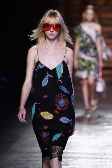 Uno stile moderno quello proposto dalla collezione primavera estate di Emilio Pucci: tagli netti, forme asimmetriche, decorazioni preziose che si alternano e borchie, colori delicati come il rosa, l'azzurro, il giallo e il corallo si affiancano a tessuti come la tela, il jersey il raso e il pizzo. Una collezione giovane e fresca, con fantasie pop alternate ad altre più classiche ed eleganti.