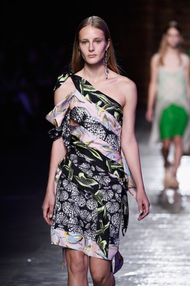 Uno stile moderno quello proposto dalla collezione primavera estate di Emilio Pucci: tagli netti, forme asimmetriche, decorazioni preziose che si alternano e borchie, colori delicati come il rosa, l'azzurro, il giallo e il corallo si affiancano a tessuti come la tela, il jersey il raso e il pizzo. Una collezione giovane e fresca, con fantasie pop alternate ad altre più classiche ed eleganti.