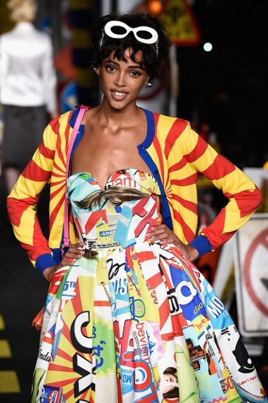 La passerella si trasforma in un cantiere stradale con tanto di segnaletica, coni arancioni e caschetti gialli. È l'effetto Moschino, che per la sua collezione ha voluto stupire tutti prendendo come ispirazione proprio i cantieri. Abiti e borse sono ricoperti da segnali stradali, i tubini sono profilati con tessuti catarinfrangenti. Outfit colorati e vivaci, tripudio di colori pop, frange, tutte e fluorescente rendono la collezione di Moschino divertente e frizzante.