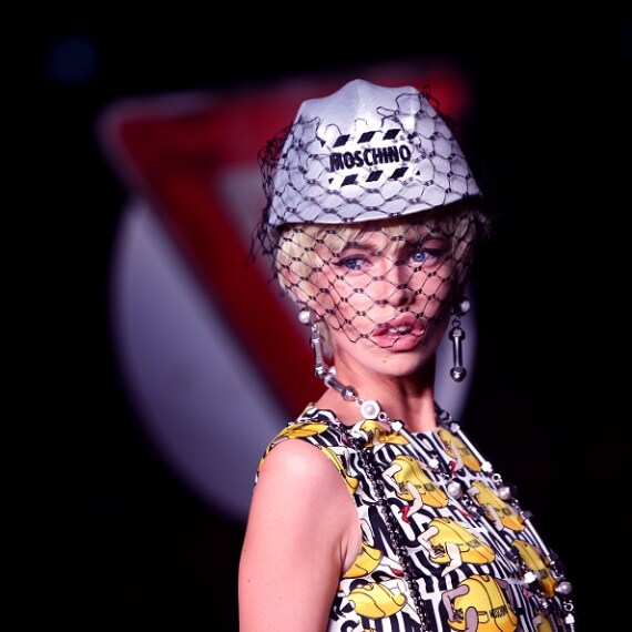 La passerella si trasforma in un cantiere stradale con tanto di segnaletica, coni arancioni e caschetti gialli. È l'effetto Moschino, che per la sua collezione ha voluto stupire tutti prendendo come ispirazione proprio i cantieri. Abiti e borse sono ricoperti da segnali stradali, i tubini sono profilati con tessuti catarinfrangenti. Outfit colorati e vivaci, tripudio di colori pop, frange, tutte e fluorescente rendono la collezione di Moschino divertente e frizzante.