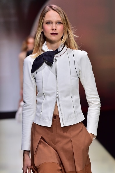 La donna di Emporio Armani è bon ton, elegante e sofisticata, vestita da tessuti morbidi e sinuosi nelle tonalità de rosa, del panna, del corallo e del cammello. Nuance delicate dalle sfumature pastello, trasparenze e pelle sono le protagoniste della collezione primaverile per il prossimo anno, con linee essenziali e pulite, perfette sia per la donna che vuole osare che per quella che preferisce la classicità di Re Giorgio.