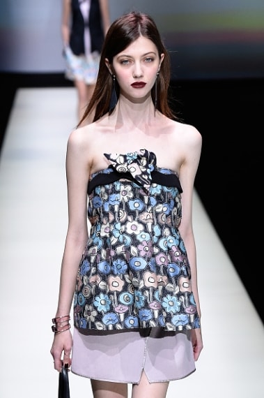 La donna di Emporio Armani è bon ton, elegante e sofisticata, vestita da tessuti morbidi e sinuosi nelle tonalità de rosa, del panna, del corallo e del cammello. Nuance delicate dalle sfumature pastello, trasparenze e pelle sono le protagoniste della collezione primaverile per il prossimo anno, con linee essenziali e pulite, perfette sia per la donna che vuole osare che per quella che preferisce la classicità di Re Giorgio.