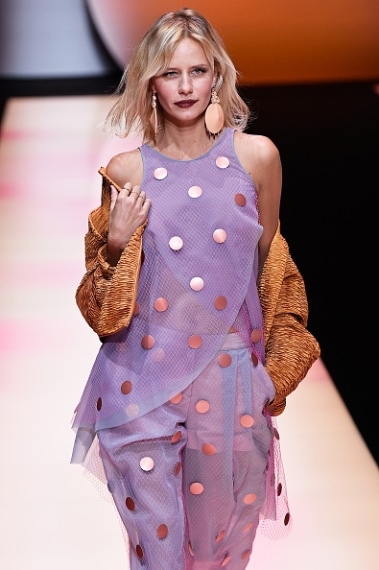 La donna di Emporio Armani è bon ton, elegante e sofisticata, vestita da tessuti morbidi e sinuosi nelle tonalità de rosa, del panna, del corallo e del cammello. Nuance delicate dalle sfumature pastello, trasparenze e pelle sono le protagoniste della collezione primaverile per il prossimo anno, con linee essenziali e pulite, perfette sia per la donna che vuole osare che per quella che preferisce la classicità di Re Giorgio.