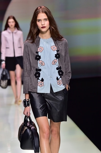 La donna di Emporio Armani è bon ton, elegante e sofisticata, vestita da tessuti morbidi e sinuosi nelle tonalità de rosa, del panna, del corallo e del cammello. Nuance delicate dalle sfumature pastello, trasparenze e pelle sono le protagoniste della collezione primaverile per il prossimo anno, con linee essenziali e pulite, perfette sia per la donna che vuole osare che per quella che preferisce la classicità di Re Giorgio.