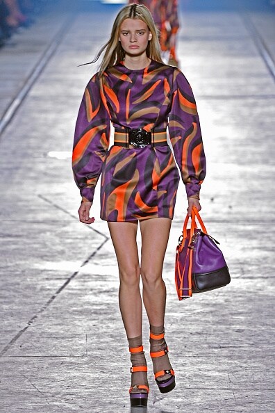 Un safari urban chic ha sfilato sulla passerella di Donatella Versace, dove animalier e look metropolitano si sono uniti a colori pop e stile elegante. Le nuance tipiche del safari come il cammello, il marrone, il verde kaki si sono unite a fucsia, giallo e verde acceso mixando stampe animalier con un tocco di eccentricità. Ai completi urban si affiancano quelli per la donna in carriera, con tailleur, minigonne e tubini.