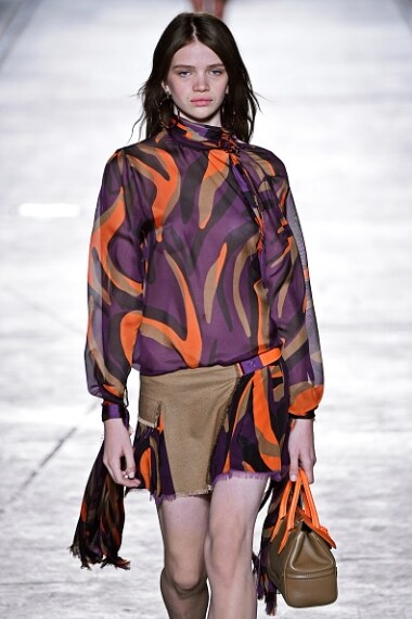 Un safari urban chic ha sfilato sulla passerella di Donatella Versace, dove animalier e look metropolitano si sono uniti a colori pop e stile elegante. Le nuance tipiche del safari come il cammello, il marrone, il verde kaki si sono unite a fucsia, giallo e verde acceso mixando stampe animalier con un tocco di eccentricità. Ai completi urban si affiancano quelli per la donna in carriera, con tailleur, minigonne e tubini.