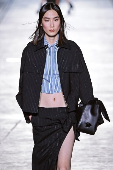 Un safari urban chic ha sfilato sulla passerella di Donatella Versace, dove animalier e look metropolitano si sono uniti a colori pop e stile elegante. Le nuance tipiche del safari come il cammello, il marrone, il verde kaki si sono unite a fucsia, giallo e verde acceso mixando stampe animalier con un tocco di eccentricità. Ai completi urban si affiancano quelli per la donna in carriera, con tailleur, minigonne e tubini.