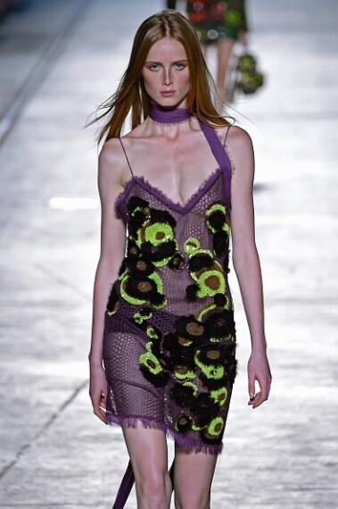 Un safari urban chic ha sfilato sulla passerella di Donatella Versace, dove animalier e look metropolitano si sono uniti a colori pop e stile elegante. Le nuance tipiche del safari come il cammello, il marrone, il verde kaki si sono unite a fucsia, giallo e verde acceso mixando stampe animalier con un tocco di eccentricità. Ai completi urban si affiancano quelli per la donna in carriera, con tailleur, minigonne e tubini.