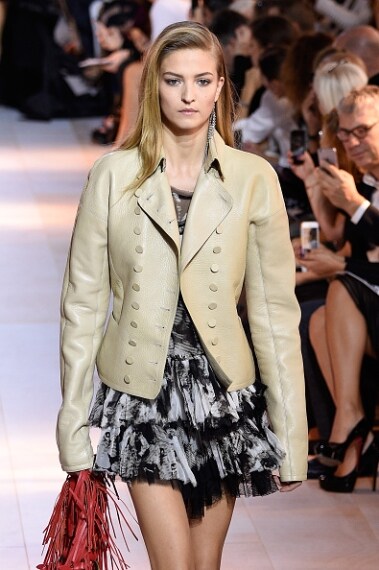 Peter Dundas torna da Roberto Cavalli e per il suo ritorno in passerella sceglie uno stile eccentrico ed elaborato, tipico della maison fiorentina. I richiami agli anni '80 con spalline max, chiodi in pelle e abiti dalla gonna asimmetrica si uniscono al rigore e al tocco sportivo del denim sbiancato. Uno stile sporty chic, con minidress, stampe animalier e tessuti i morbidi.