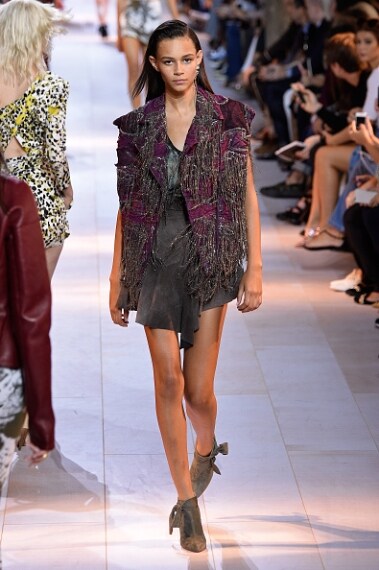 Peter Dundas torna da Roberto Cavalli e per il suo ritorno in passerella sceglie uno stile eccentrico ed elaborato, tipico della maison fiorentina. I richiami agli anni '80 con spalline max, chiodi in pelle e abiti dalla gonna asimmetrica si uniscono al rigore e al tocco sportivo del denim sbiancato. Uno stile sporty chic, con minidress, stampe animalier e tessuti i morbidi.
