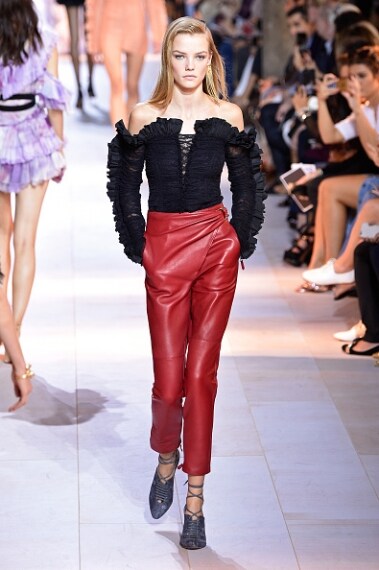 Peter Dundas torna da Roberto Cavalli e per il suo ritorno in passerella sceglie uno stile eccentrico ed elaborato, tipico della maison fiorentina. I richiami agli anni '80 con spalline max, chiodi in pelle e abiti dalla gonna asimmetrica si uniscono al rigore e al tocco sportivo del denim sbiancato. Uno stile sporty chic, con minidress, stampe animalier e tessuti i morbidi.