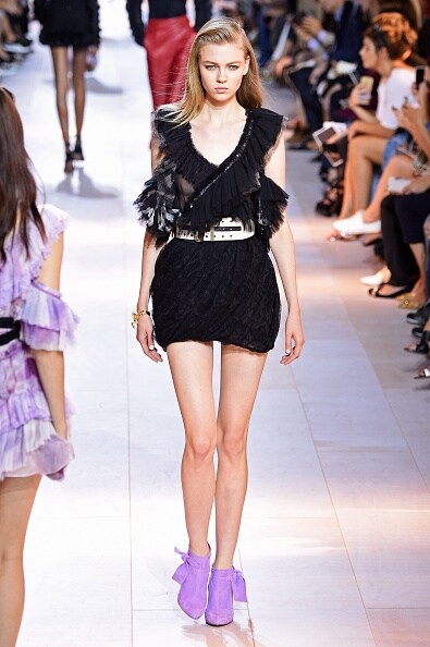 Peter Dundas torna da Roberto Cavalli e per il suo ritorno in passerella sceglie uno stile eccentrico ed elaborato, tipico della maison fiorentina. I richiami agli anni '80 con spalline max, chiodi in pelle e abiti dalla gonna asimmetrica si uniscono al rigore e al tocco sportivo del denim sbiancato. Uno stile sporty chic, con minidress, stampe animalier e tessuti i morbidi.