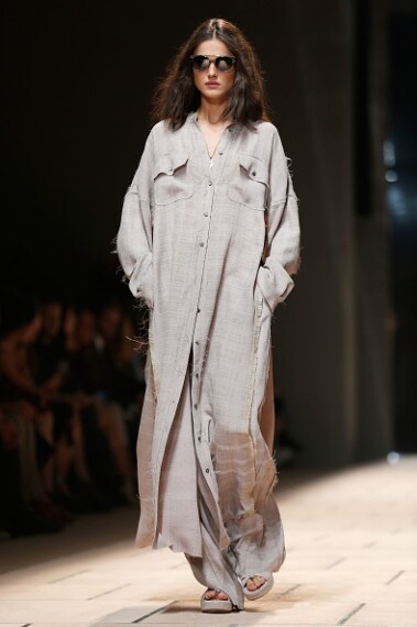 La donna di Trussardi è una viaggiatrice, vestita con volumi ampi e morbidi e tessuti che richiamo il mondo della natura. I colori protagonisti sono il sabbia, prevalente nella collezione primaverile, ma anche il marrone, l'arancione, il verde kaki e l'intramontabile bianco e nero. Le gonne sfiorano la caviglia così come i maxi dress, i tagli sono spesso asimmetrici, con spacchi e scollature.