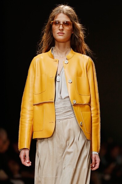La donna di Trussardi è una viaggiatrice, vestita con volumi ampi e morbidi e tessuti che richiamo il mondo della natura. I colori protagonisti sono il sabbia, prevalente nella collezione primaverile, ma anche il marrone, l'arancione, il verde kaki e l'intramontabile bianco e nero. Le gonne sfiorano la caviglia così come i maxi dress, i tagli sono spesso asimmetrici, con spacchi e scollature.