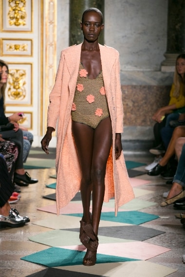 Stampe colorate, abiti corti total white, pantaloni a vita alta e modelli dai tessuti trasparenti sfilano sulla passerella Primavera/Estate 2016 di Kristina Ti. La stilista presenta alla Fashion Week di Milano una collezione fatta di elementi opposti che si incontrano per dar vita al guardaroba di una donna sensuale e contemporanea.