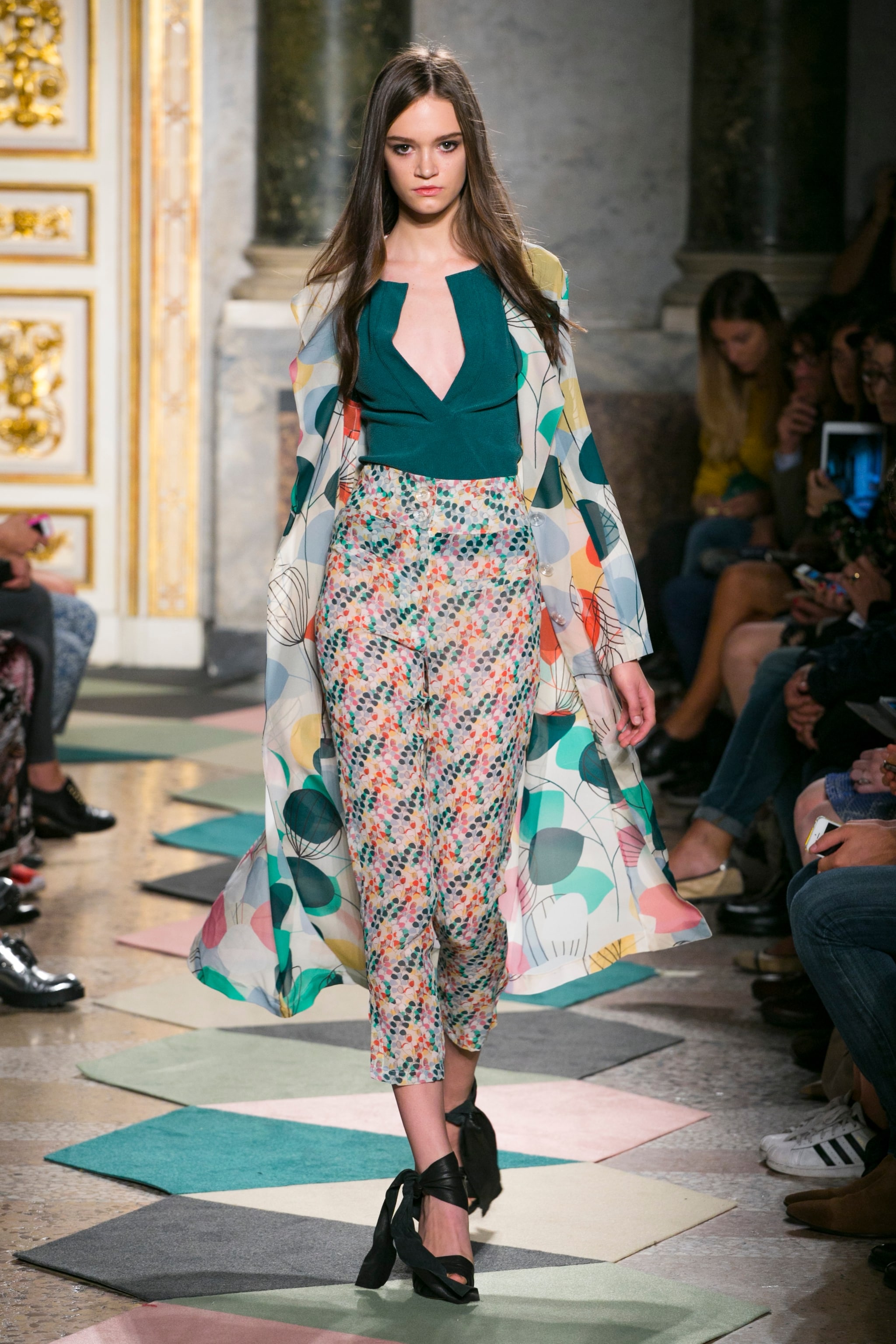 Stampe colorate, abiti corti total white, pantaloni a vita alta e modelli dai tessuti trasparenti sfilano sulla passerella Primavera/Estate 2016 di Kristina Ti. La stilista presenta alla Fashion Week di Milano una collezione fatta di elementi opposti che si incontrano per dar vita al guardaroba di una donna sensuale e contemporanea.