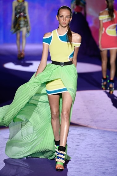 Sulla passerella sfila una collezione audace dai colori carioca e dalle forme accattivanti: è lo stile inconfondibile di DSquared2, estroso, frizzante ed eccentrico. Accostamenti color block, pellicce, fantasie tribali e top elasticizzati che creano una seconda pelle, ovviamente tatuata, in netto contrasto con l'outfit, dalle forme irregolari, lunghezze mini e gonne vaporose. Uno spettacolo a tutto colore, fatto di tessuti leggeri, trasparenze e sovrapposizioni che esaltano la sensualità femminile.