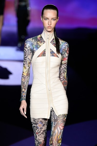 Sulla passerella sfila una collezione audace dai colori carioca e dalle forme accattivanti: è lo stile inconfondibile di DSquared2, estroso, frizzante ed eccentrico. Accostamenti color block, pellicce, fantasie tribali e top elasticizzati che creano una seconda pelle, ovviamente tatuata, in netto contrasto con l'outfit, dalle forme irregolari, lunghezze mini e gonne vaporose. Uno spettacolo a tutto colore, fatto di tessuti leggeri, trasparenze e sovrapposizioni che esaltano la sensualità femminile.