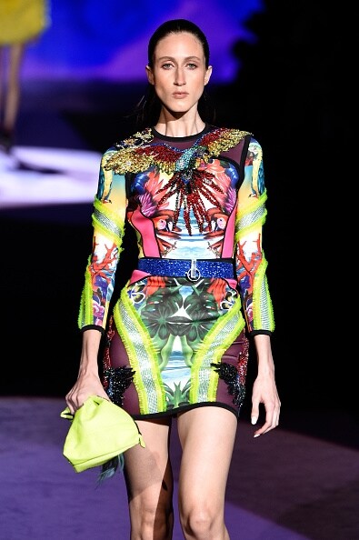 Sulla passerella sfila una collezione audace dai colori carioca e dalle forme accattivanti: è lo stile inconfondibile di DSquared2, estroso, frizzante ed eccentrico. Accostamenti color block, pellicce, fantasie tribali e top elasticizzati che creano una seconda pelle, ovviamente tatuata, in netto contrasto con l'outfit, dalle forme irregolari, lunghezze mini e gonne vaporose. Uno spettacolo a tutto colore, fatto di tessuti leggeri, trasparenze e sovrapposizioni che esaltano la sensualità femminile.