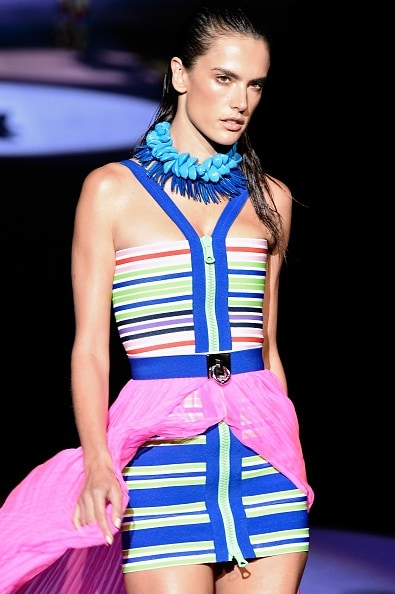 Sulla passerella sfila una collezione audace dai colori carioca e dalle forme accattivanti: è lo stile inconfondibile di DSquared2, estroso, frizzante ed eccentrico. Accostamenti color block, pellicce, fantasie tribali e top elasticizzati che creano una seconda pelle, ovviamente tatuata, in netto contrasto con l'outfit, dalle forme irregolari, lunghezze mini e gonne vaporose. Uno spettacolo a tutto colore, fatto di tessuti leggeri, trasparenze e sovrapposizioni che esaltano la sensualità femminile.
