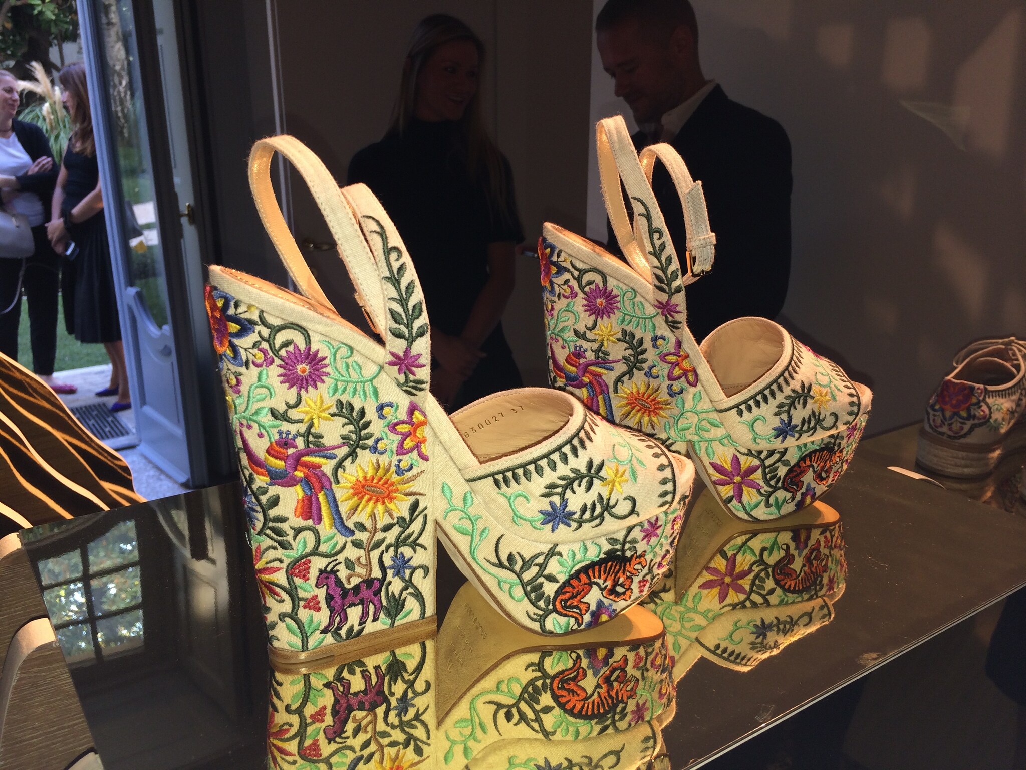 Ricami floreali su zeppe in stile anni '70, modelli con tacco in legno o con intrecci di pelle colorata, linee sinuose ed eleganti, ecco in anteprima le scarpe della collezione Primavera/Estate 2016 di Sergio Rossi presentate alla Milano Fashion Week.