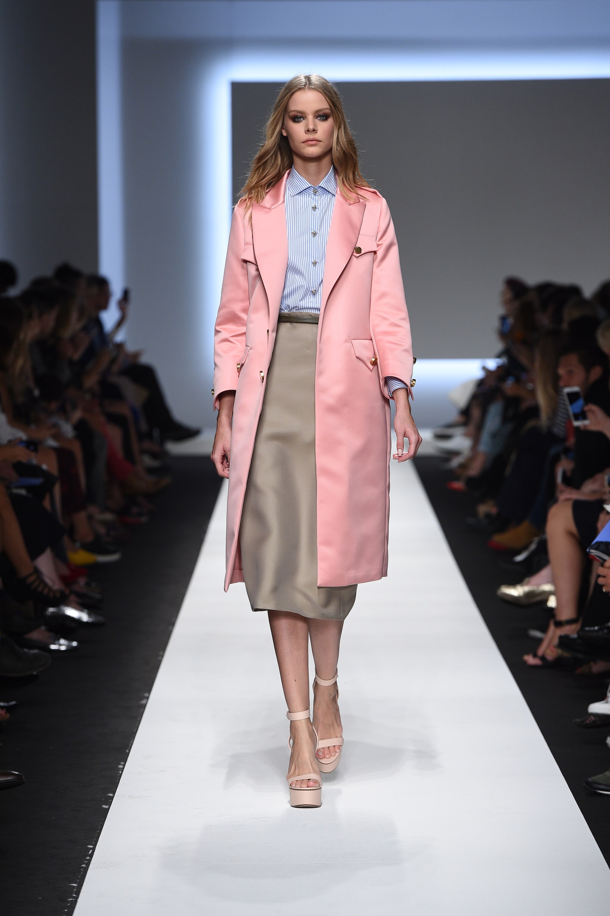 La donna di Ermanno Snervino è femminile anche quando indossa abiti ispirati al guardaroba maschile, come lo spolverino in taglio smoking o le camicie à la garćonne. Il tessuto protagonista è il pizzo che viene spesso sovrapposto per creare sensualità: la silhouette è resa sinuosa da abiti lunghi e morbidi creati con organza e chiffon, ma sono presenti anche le stampe floreali e le ispirazioni safari.